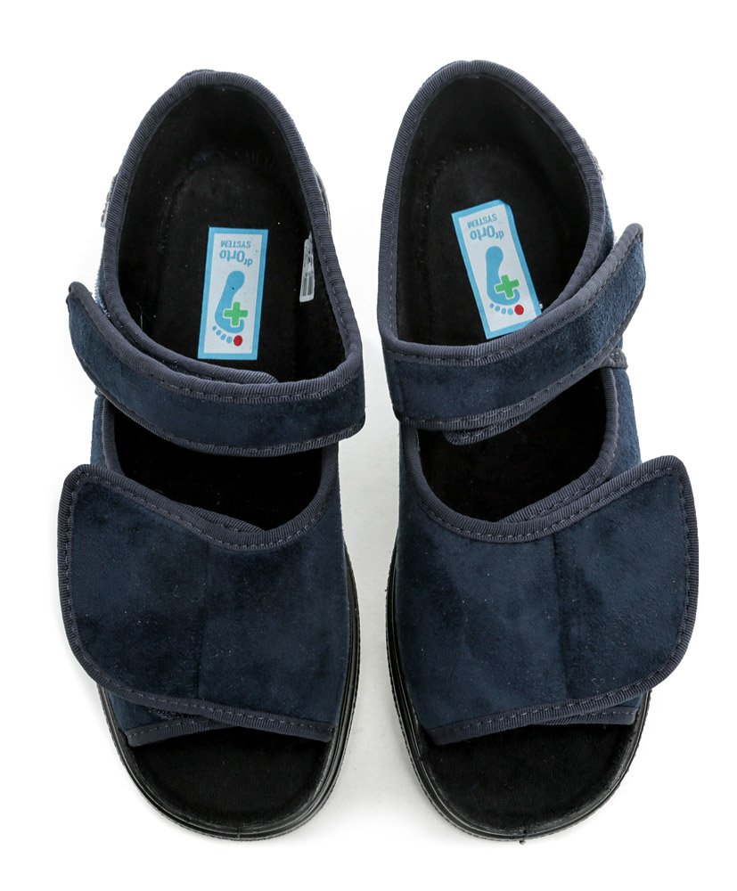 Dámska letná vychádzková alebo celoročná domáca, zdravotná, ortopedická a diabetická obuv so zapínaním na dva pásiky cez priehlavok.