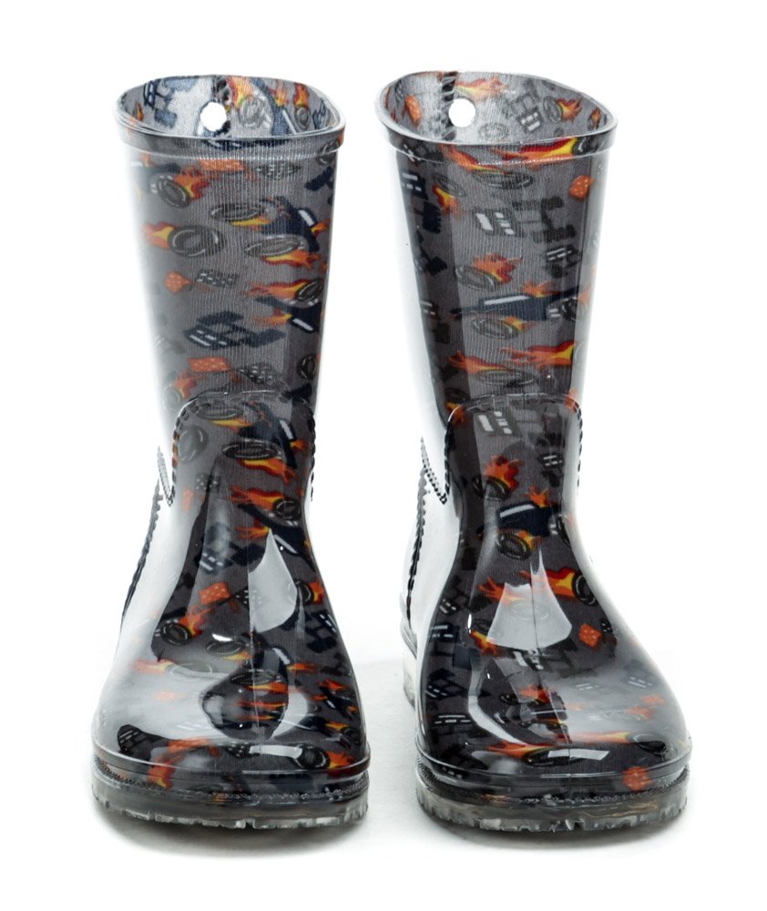 Obuv je vyrobená z priehľadného gumového materiálu. Vnútorná časť obuvi je vybavená textilnou podšívkou, ktorá tvorí farbu a motív čižmy.