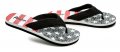 Letná rekreačná nazúvacia obuv s úchopom medzi prstami, vyrobená z kombinácie textilného a syntetického materiálu.