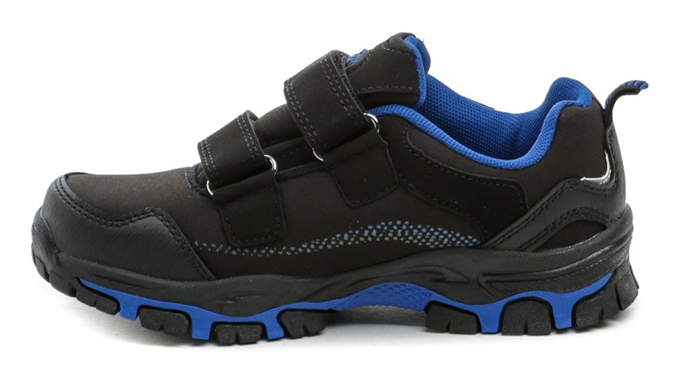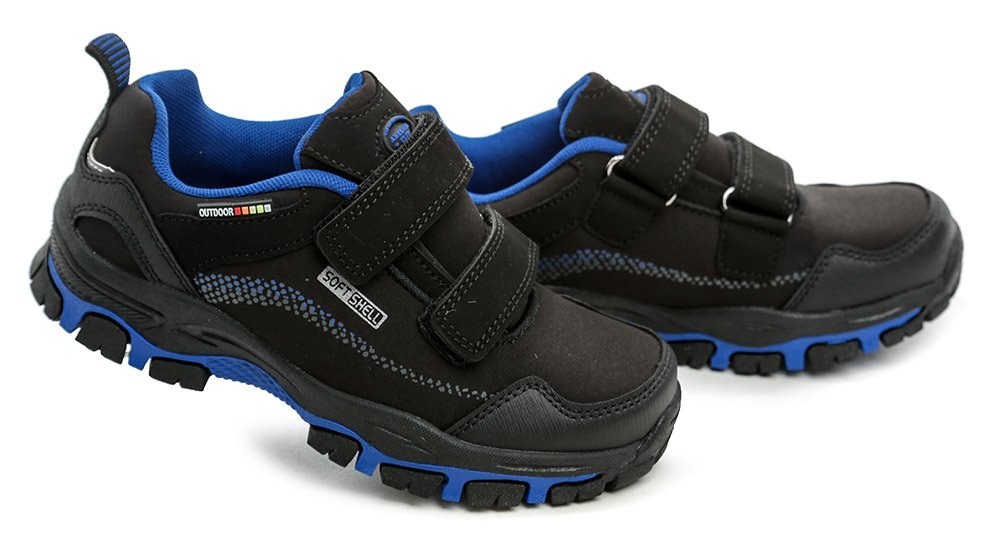 Celoročná vychádzková outdoorová obuv sa zalepovaním na suchý zips, vyrobená z kombinácie syntetického materiálu s textilným SOFTSHELL materiálom.