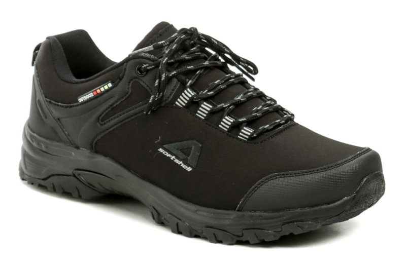 Zvršok obuvi je vyrobený zo softshell textilného materiálu v kombinácii so syntetickým materiálom. Podšívka je z textilného materiálu.