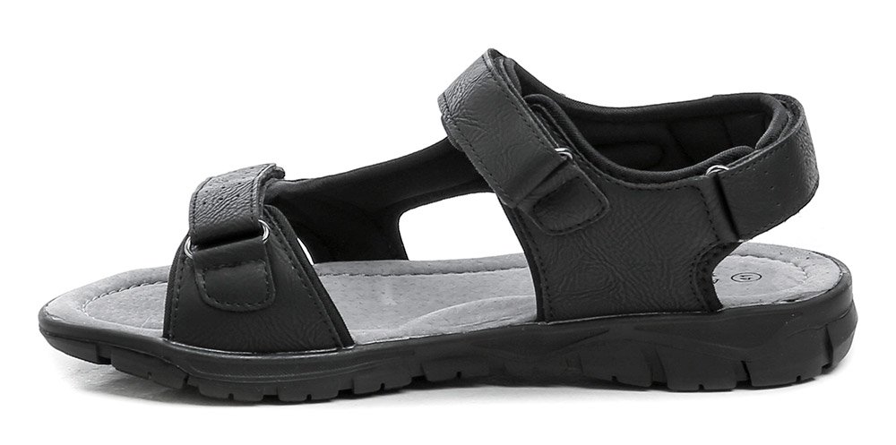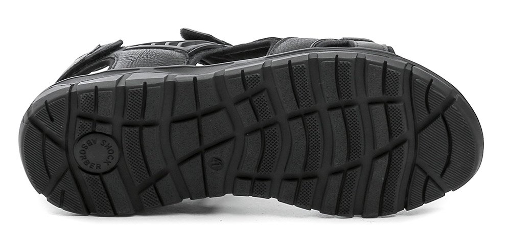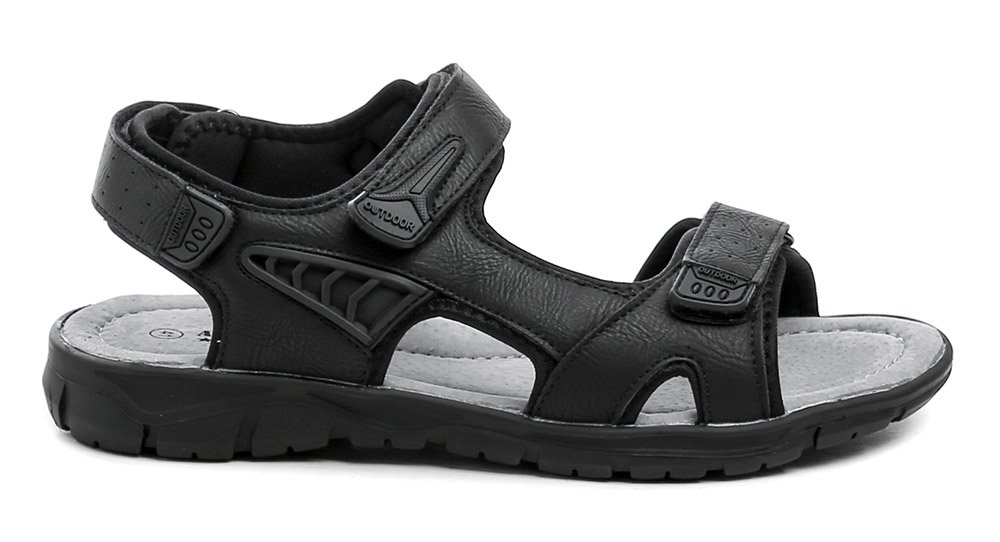 Pánska letná vychádzková obuv typu sandále so zapínaním na suchý zips. Obuv je vyrobená z kombinácie syntetickej kože a prírodnej kože s textilným materiálom.