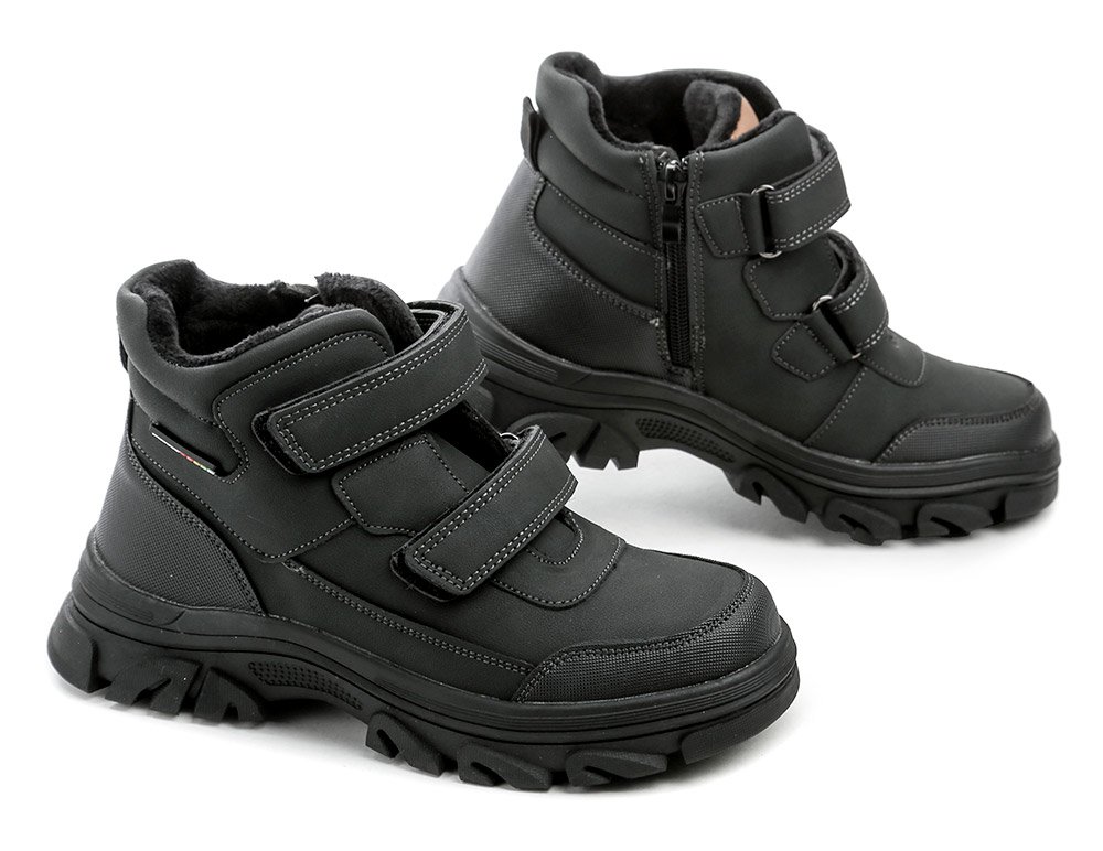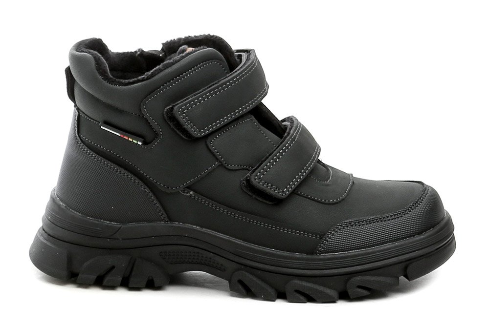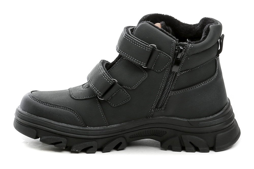 Detská zimná vychádzková členková obuv so zapínaním na bežný zips a tiež na 2 suché zipsy. Obuv je vyrobená z kombinácie syntetického a textilného materiálu, vyteplená jemným semišovým materiálom.