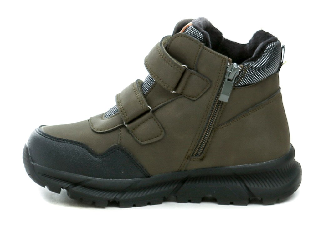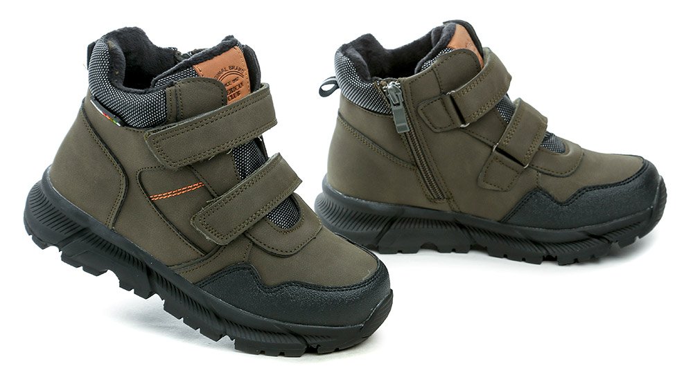 Detská zimná vychádzková členková obuv so zapínaním na bežný zips a tiež na 2 suché zipsy. Obuv je vyrobená z kombinácie syntetického a textilného materiálu, vyteplená jemným semišovým materiálom.