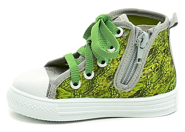 Dětská celoroční vycházková volnočasová kotníčková obuv na šněrování a zip, vyrobená z textilního materiálu v kombinaci s pogumovanou špičkou.