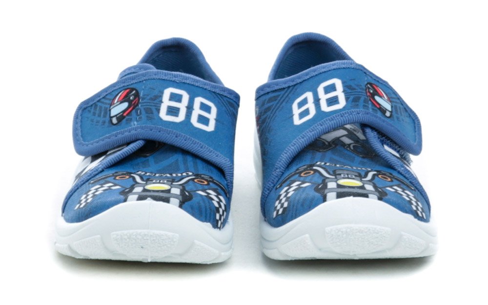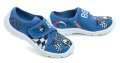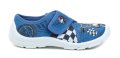 Detská celoročná vychádzková a rekreačná voľnočasová obuv so zapínaním na suchý zips, vyrobená z textilného materiálu.