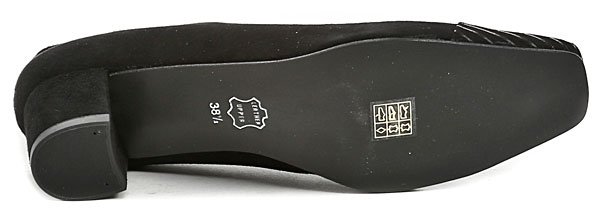 Obuv je vyrobena z pravé přírodní kůže, vnitřní část obuvi je vybavená podšívkou rovněž z pravé přírodní kůže. Podpatek je potahovaný semišovou kůží. Podešev je hladká z neklouzavého materiálu.