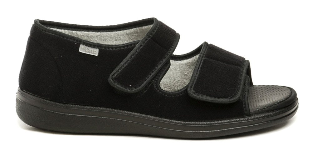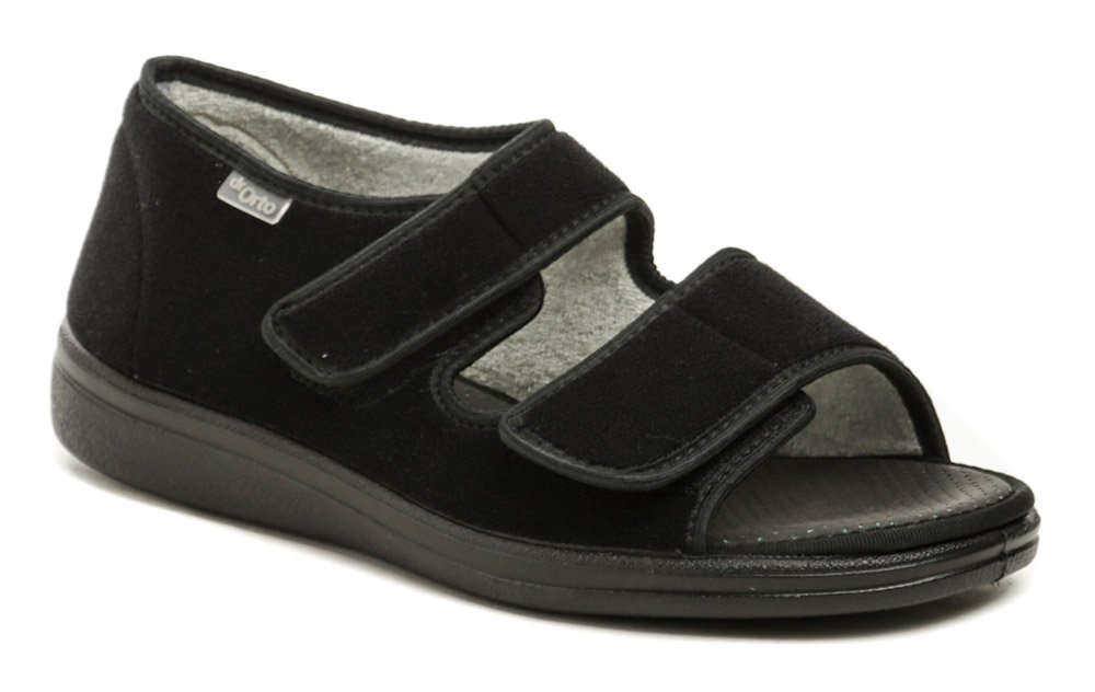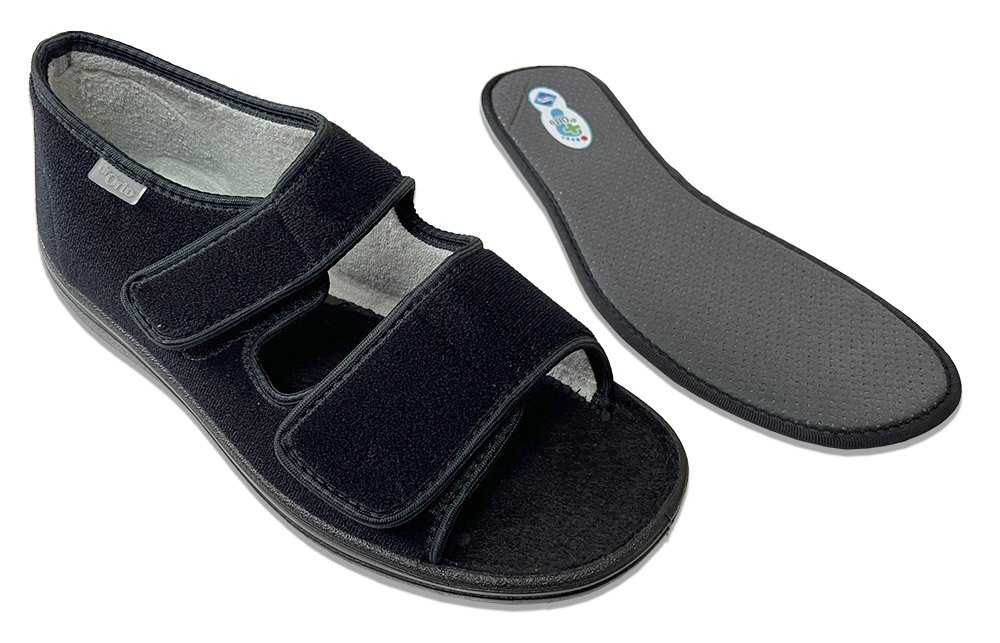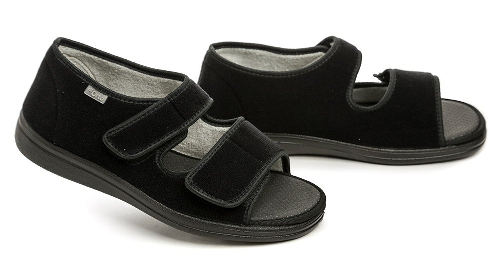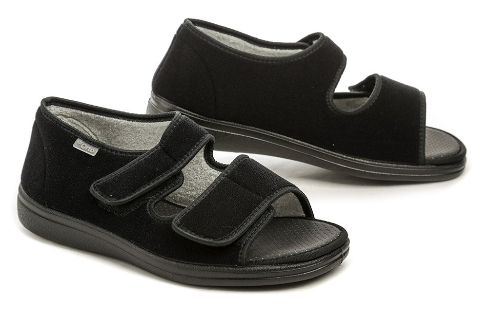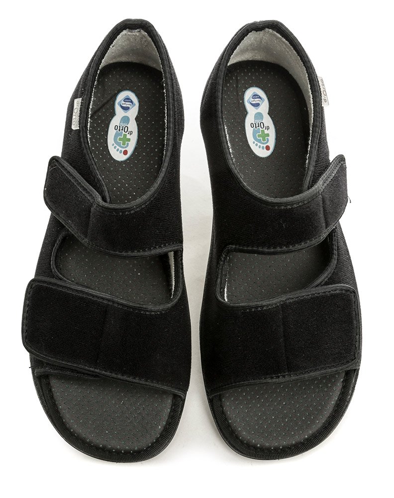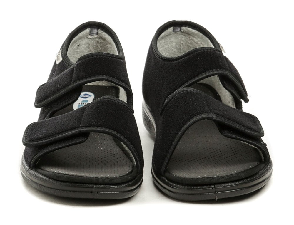 Dámska letná vychádzková alebo celoročná domáca, zdravotná, ortopedická a diabetická obuv so zapínaním na dva pásiky cez priehlavok.