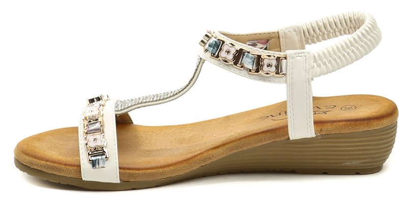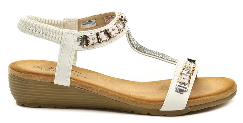 Dámská letní vycházková obuv na mírném klínku s pružným páskem kolem paty.