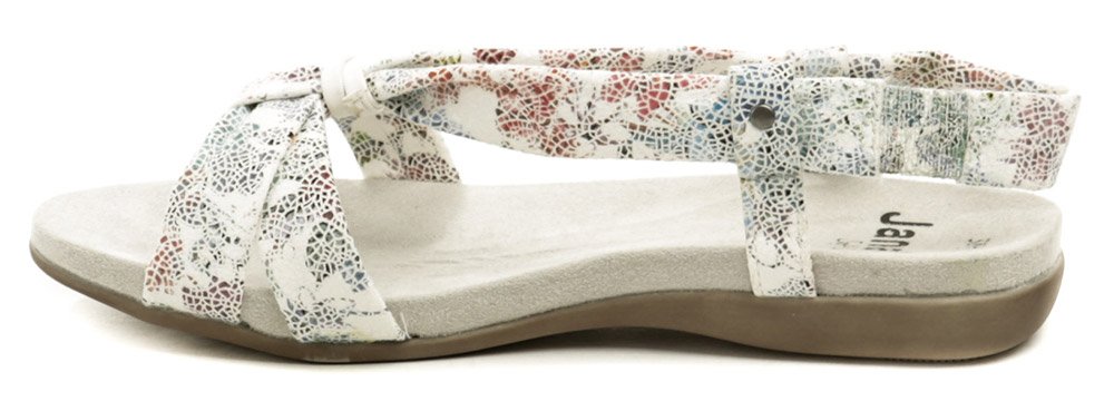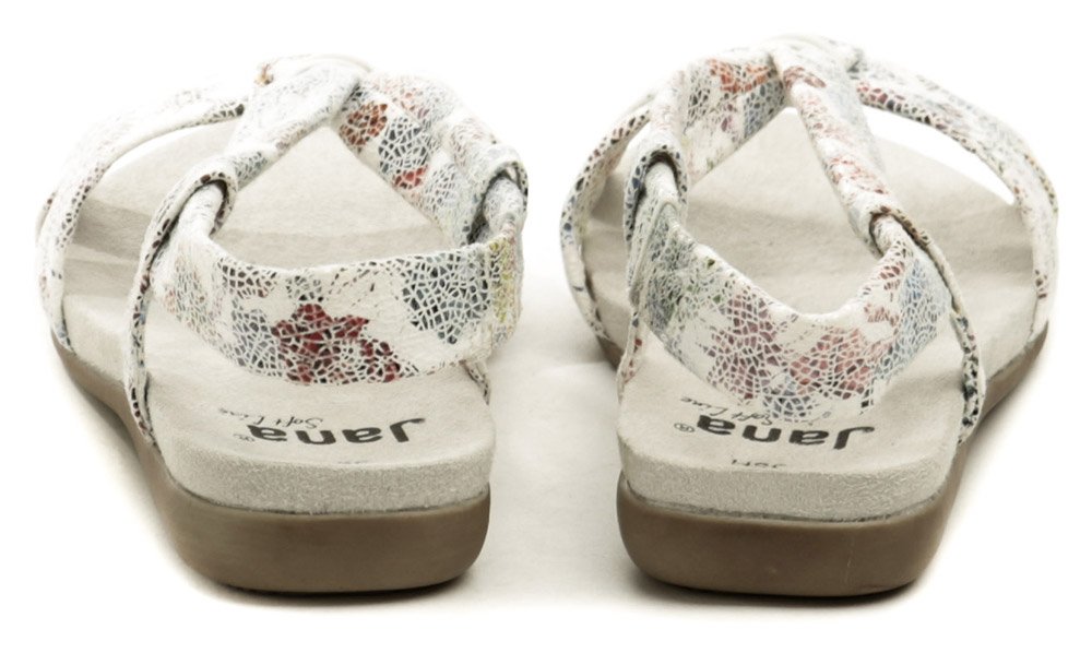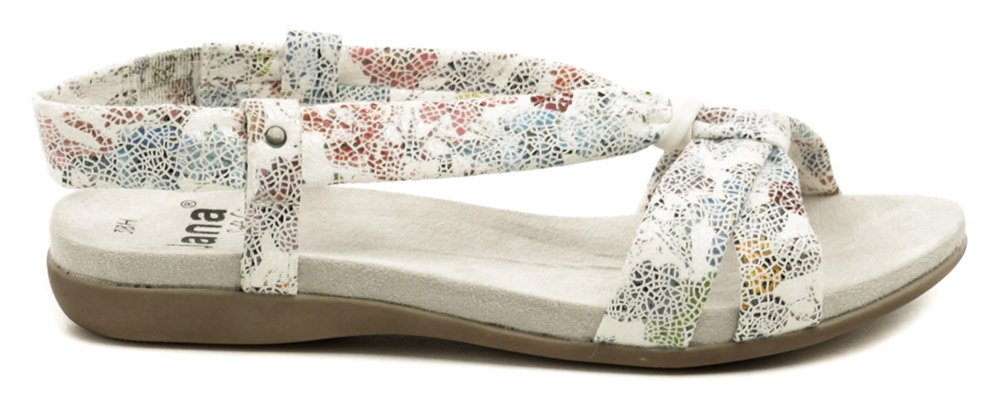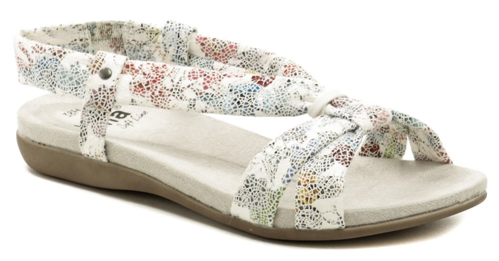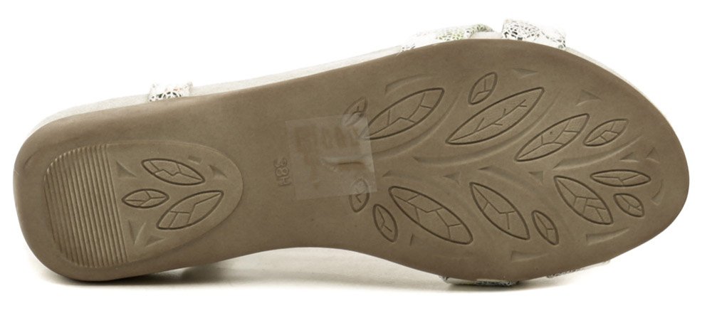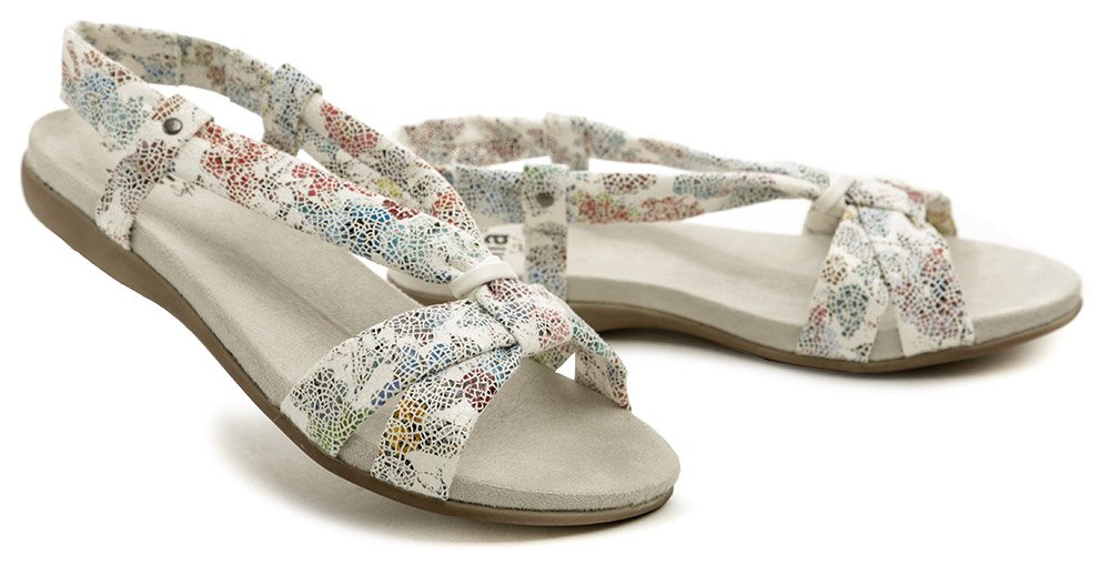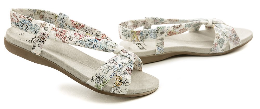Dámska letná vychádzková sandálová obuv tvorená textilnými pásky s nazouváním okolo päty.