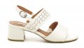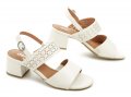 Dámska letná vychádzková obuv typu sandále na podpätku so zapínaním na opasok okolo päty.