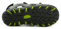 Detská letná vychádzková a trekingové sandálová obuv, vyrobená z kombinácie syntetického a textilného materiálu.
