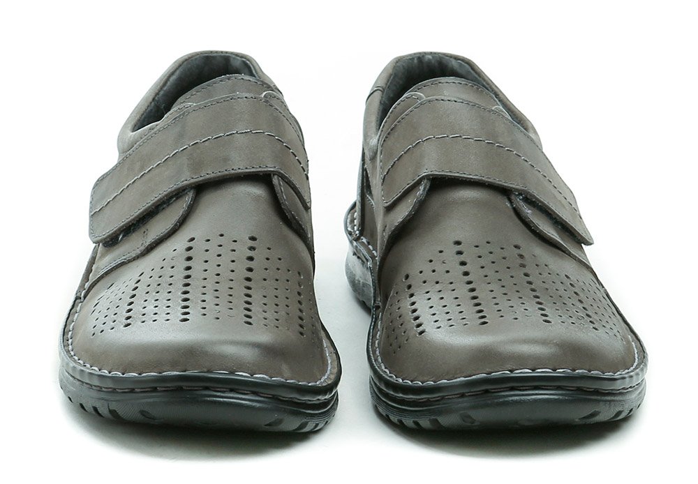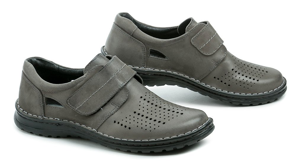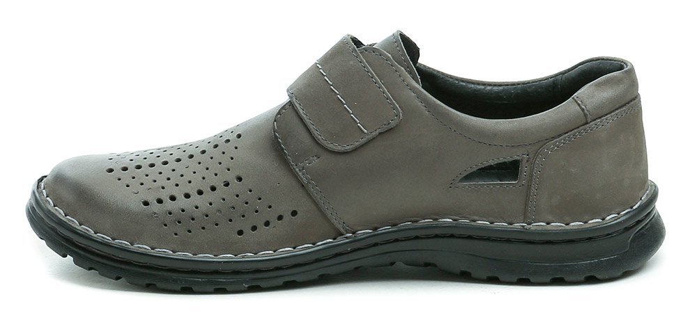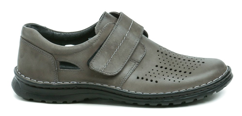 Pánska letná vychádzková obuv typu poltopánky so zapínaním na suchý zips, vyrobená z pravej prírodnej kože.