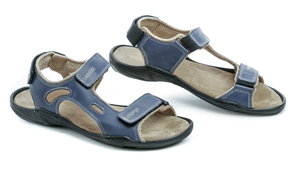 Pánska letná vychádzková obuv s nastaviteľnými pásky cez priehlavok a okolo päty, vyrobená z pravej prírodnej kože.