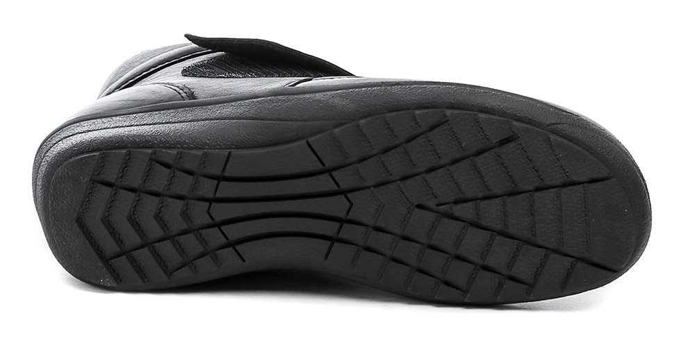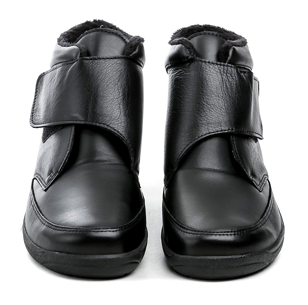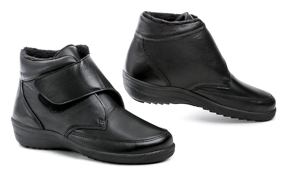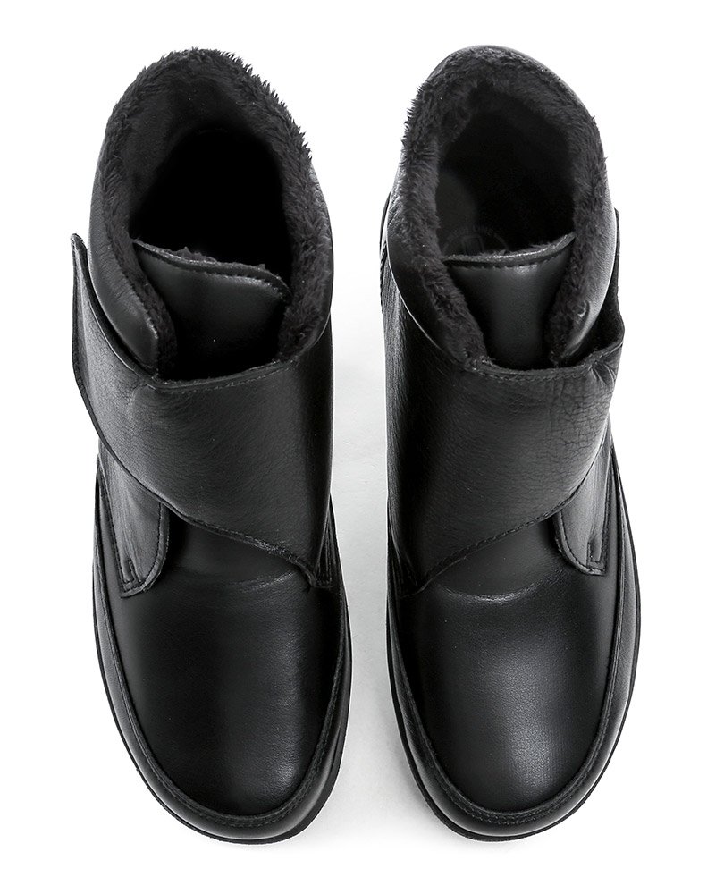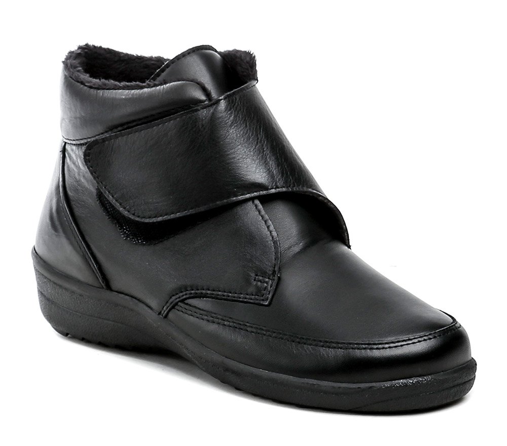 Dámska zimná členková vychádzková zdravotná obuv so zapínaním na suchý zips. Obuv je vyrobená z kombinácie pravej prírodnej kože a syntetického pružného materiálu vhodného pre halluxy a široké chodidlá.