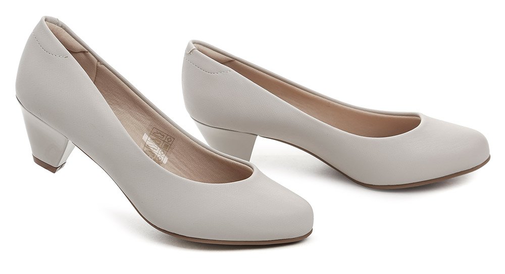 Dámska celoročná vychádzková a spoločenská obuv na stabilnom podpätku, vyrobená zo syntetického materiálu.