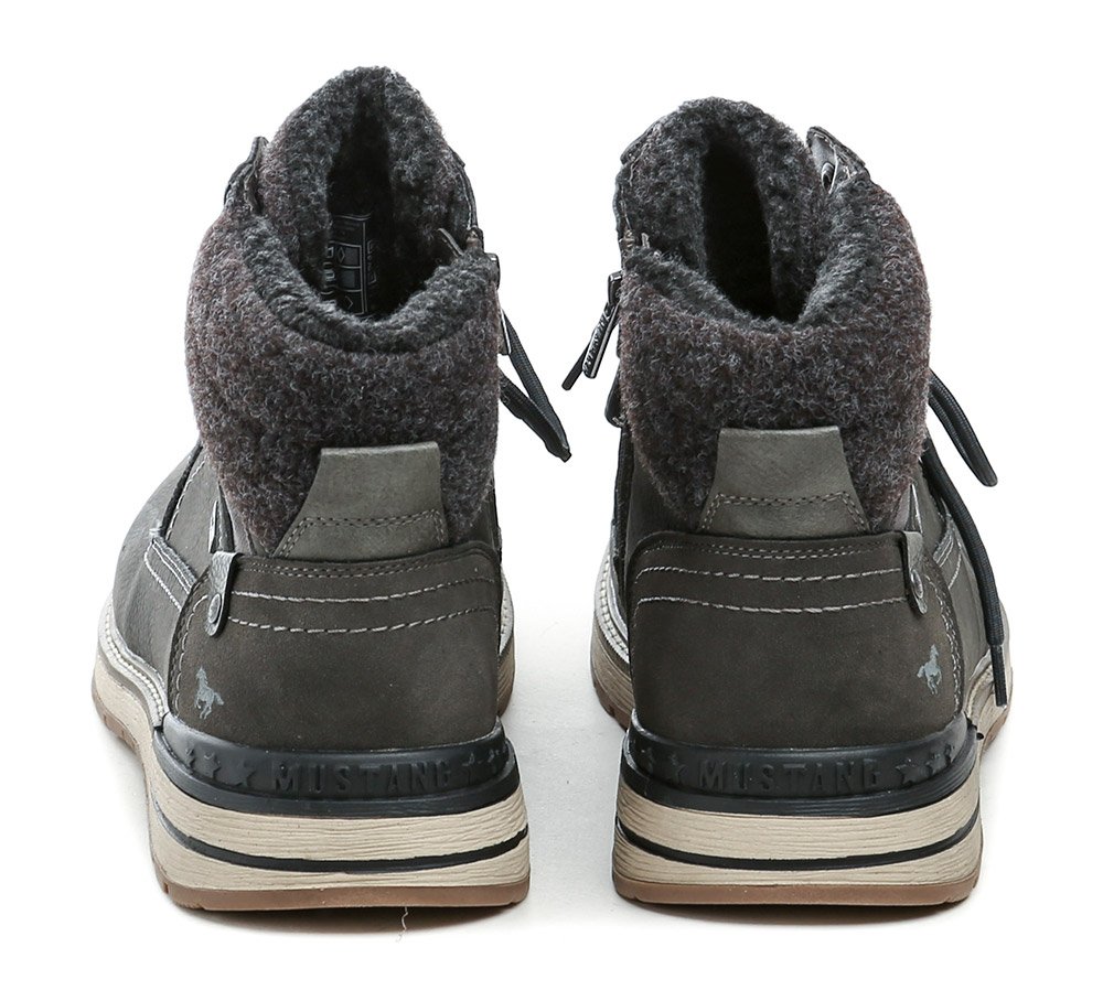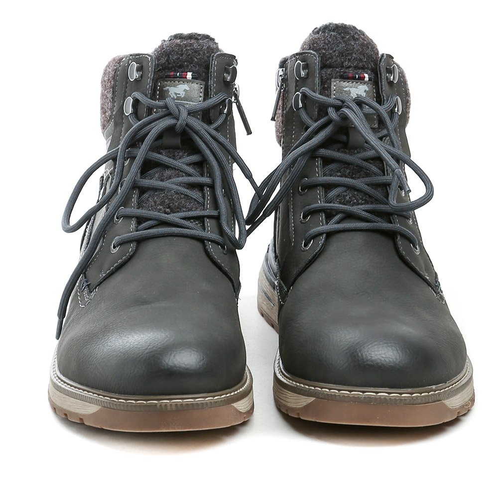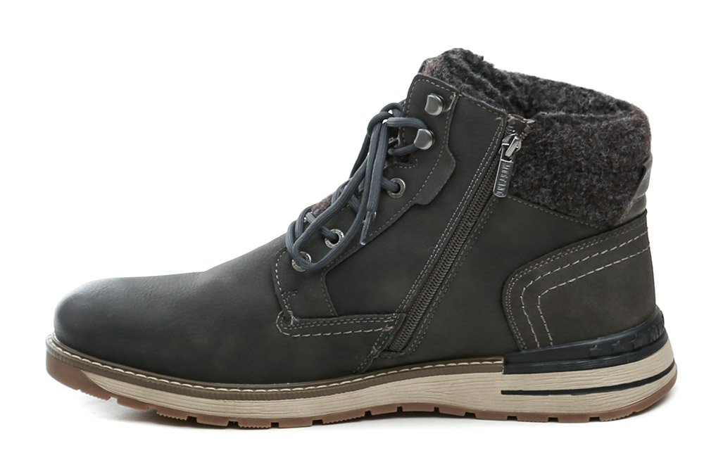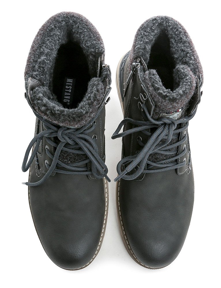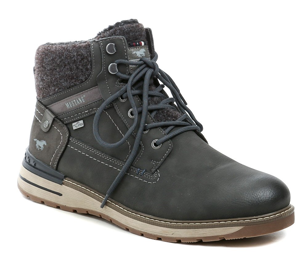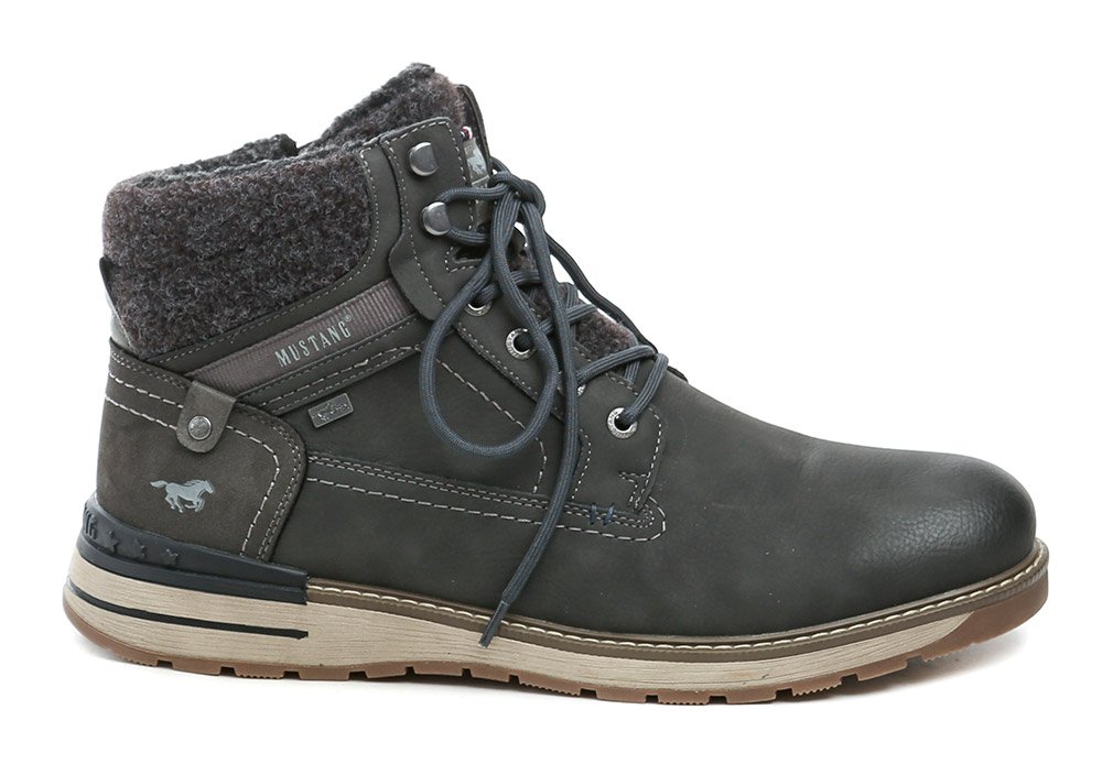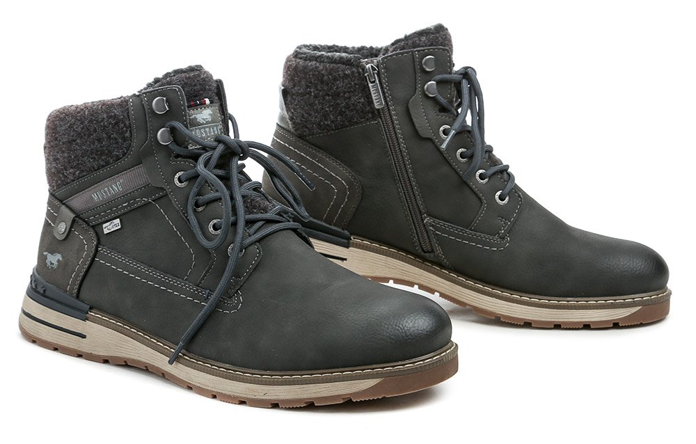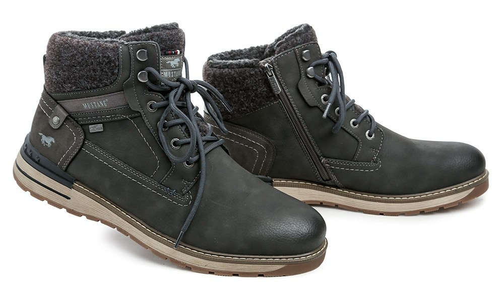 Pánska zimná členková obuv na šnurovanie a tiež so zapínaním na zips. Obuv je vyrobená zo syntetického materiálu s membránou MustangTEX, vo vnútri zateplená chlpatým textilným kožúškom.