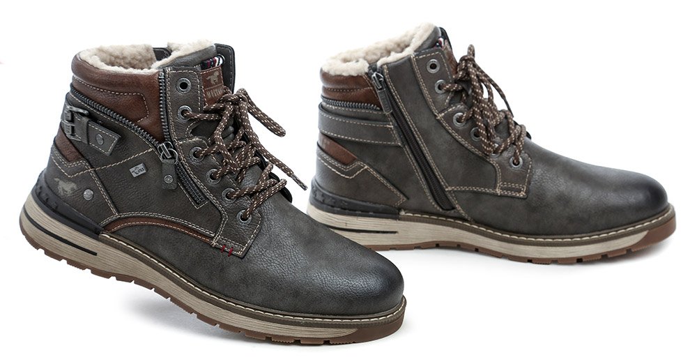 Pánska zimná vychádzková členková obuv na šnurovanie a tiež so zapínaním na zips.