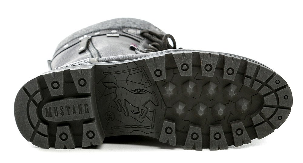 Dámska zimná členková obuv na šnurovanie a tiež so zapínaním na zips. Obuv je vyrobená zo syntetického materiálu s membránou MustangTEX, vo vnútri zateplená chlpatým textilným kožúškom.
