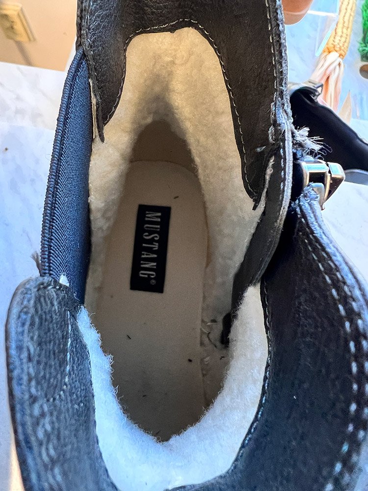 Obuv je vyrobená zo syntetického materiálu, ktorý imituje kožu. Vnútorná časť obuvi je vybavená jemným textilným kožúškom.