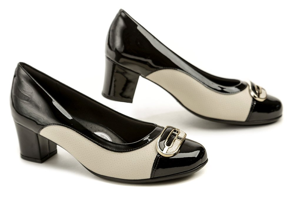 Dámska celoročná vychádzková obuv na strednom podpätku, vyrobená z kvalitného syntetického materiálu s pohodlnou stielkou. Špeciálna úprava BUNION - mäkký materiál v oblasti palcového kĺbu.