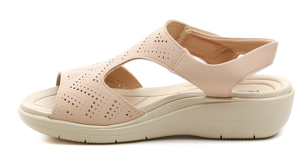 Dámska letná zdravotná vychádzková obuv na nízkom kline s voľnou špicou i pätou. Obuv je vyrobená z kvalitného syntetického materiálu a polstrovanou textilnou podšívkou.
