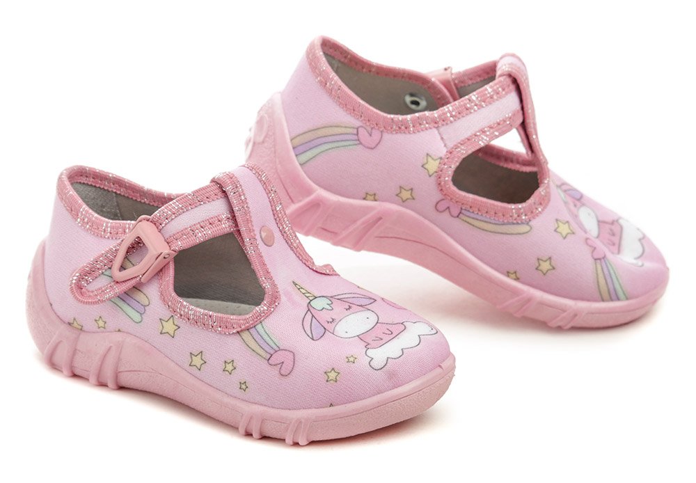 Detská celoročná rekreačná aj domáca voľnočasová obuv so zapínaním na opasok so sponou.