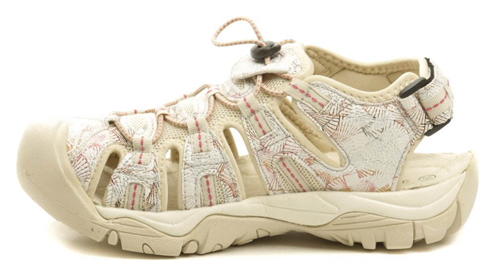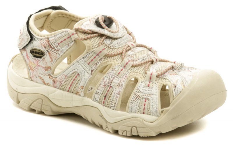 Letná vychádzková sandálová obuv so zapínaním na opasok okolo päty suchým zipsom.