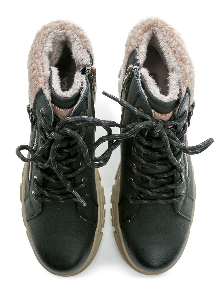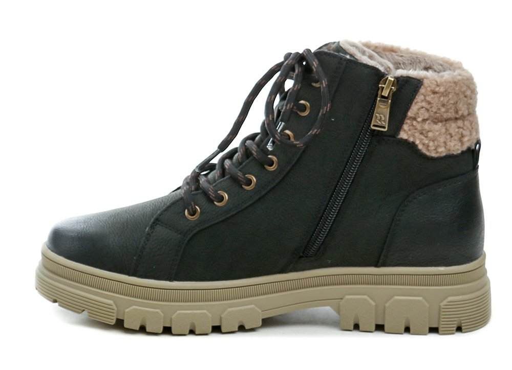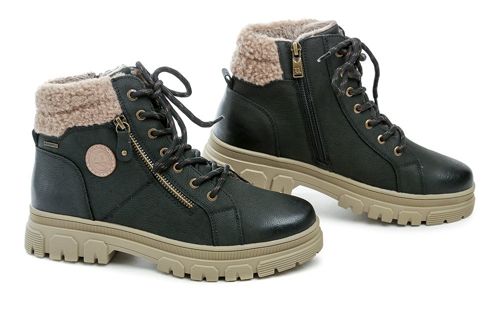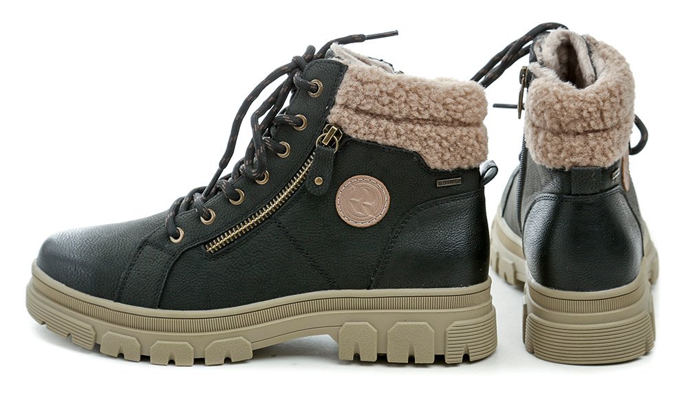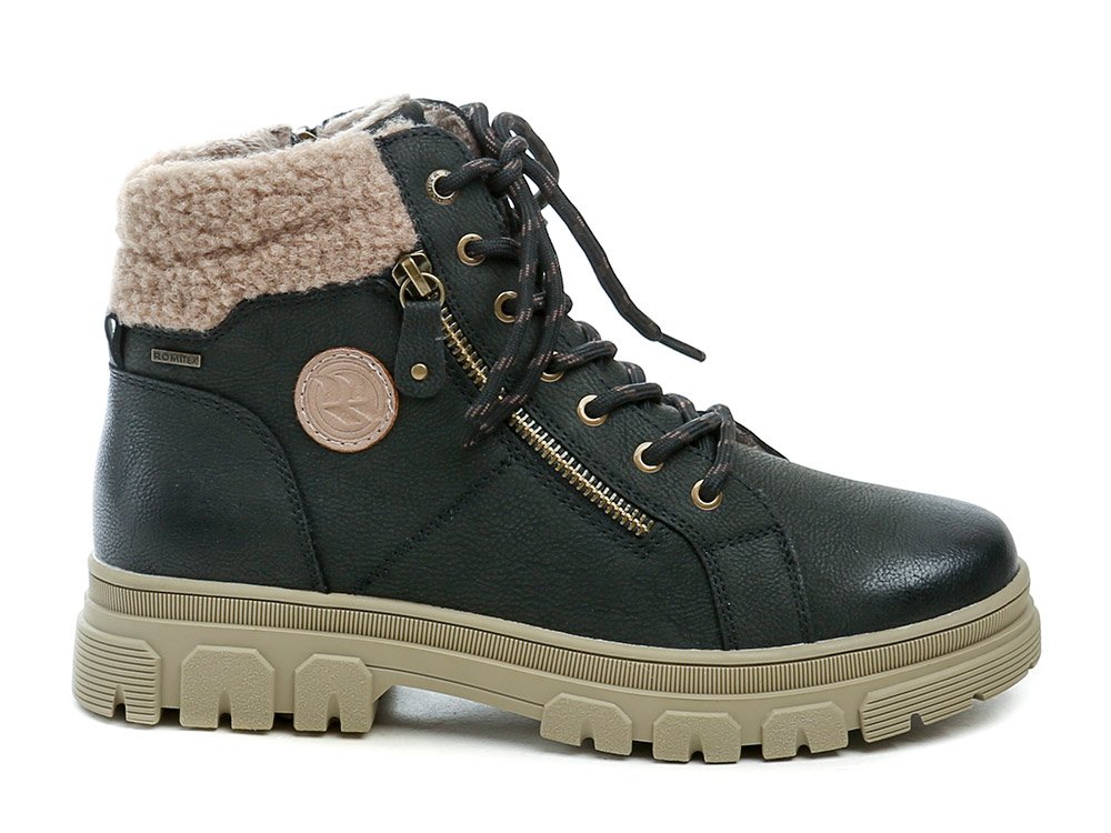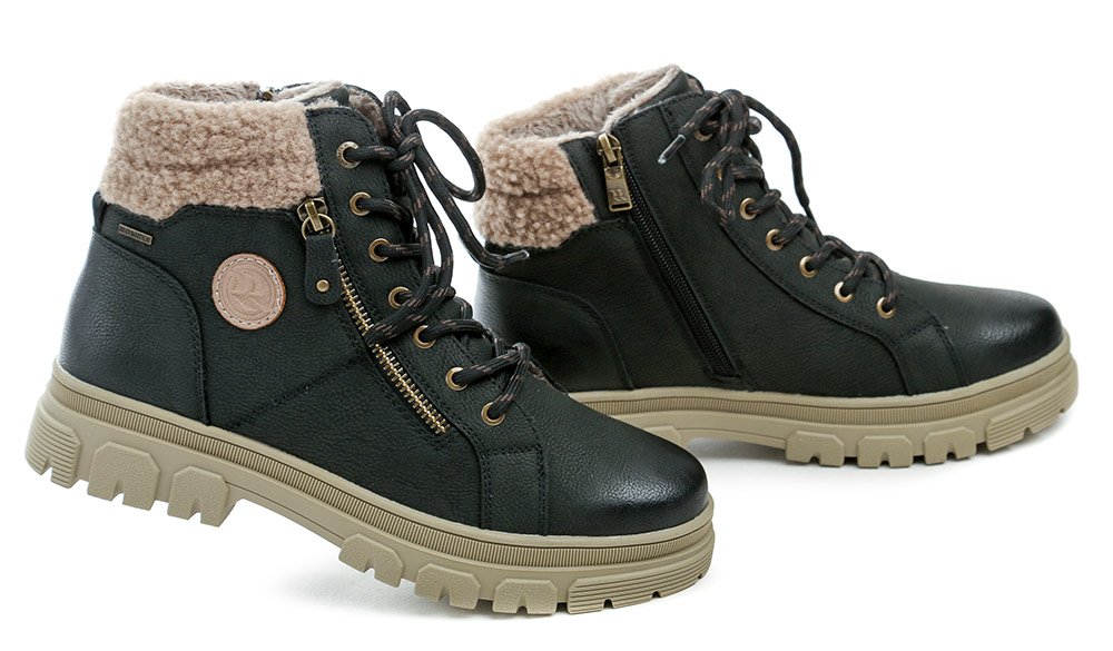 Zimná členková vychádzková obuv so zaväzovaním na šnúrky aj bežný zips. Obuv je vyrobená zo syntetického materiálu, vo vnútri zateplená jemným textilným kožúškom a membránou Romitex.