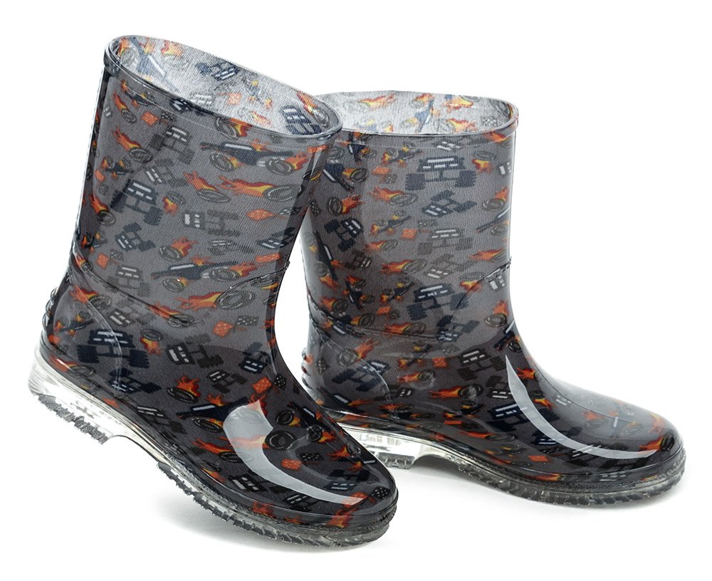 Obuv je vyrobená z priehľadného gumového materiálu. Vnútorná časť obuvi je vybavená textilnou podšívkou, ktorá tvorí farbu a motív čižmy.