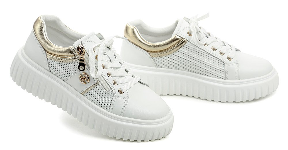 T.Sokolski W26-658 bielo zlaté dámske poltopánky na platforme