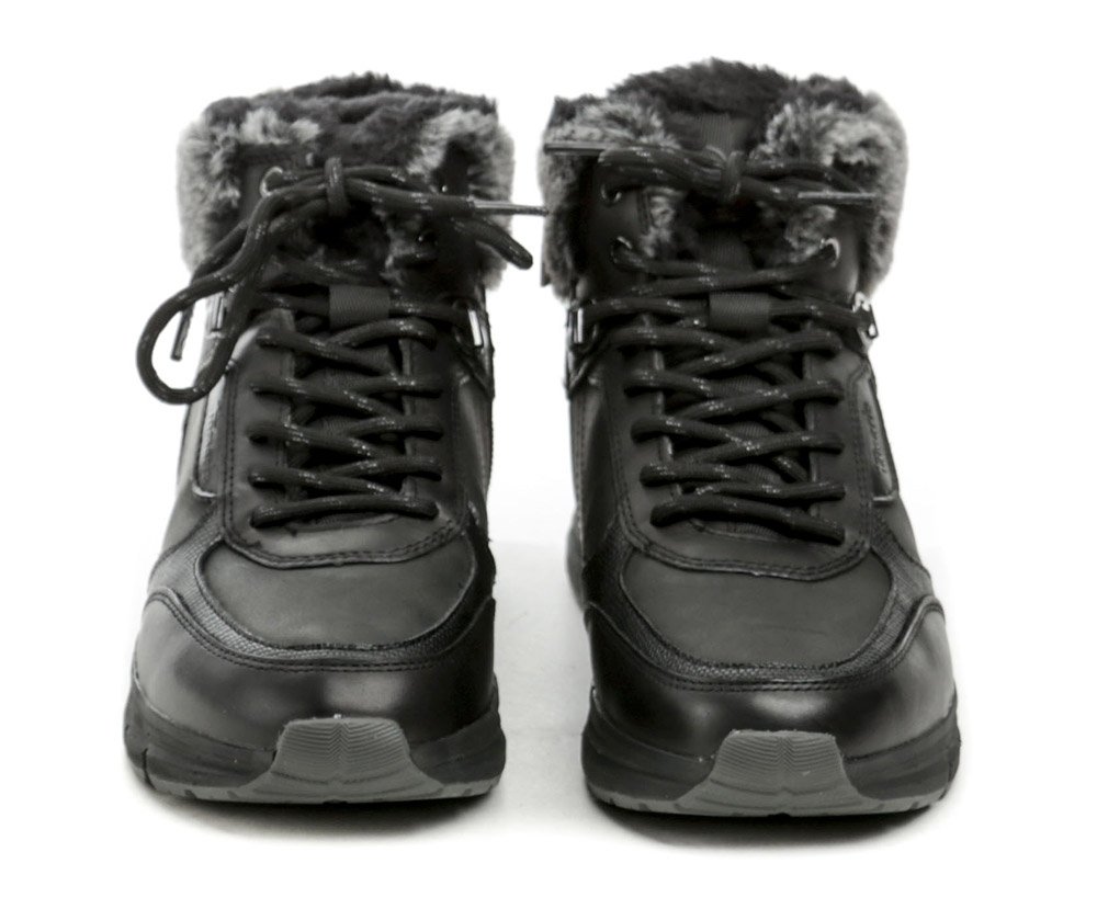Dámska zimná členková obuv typu tenisky na šnurovanie aj so zapínaním na zips. Topánky sú vyrobené z kombinácie pravej prírodnej kože a syntetického materiálu. Vnútri vybavené chlpatým textilným kožúškom.