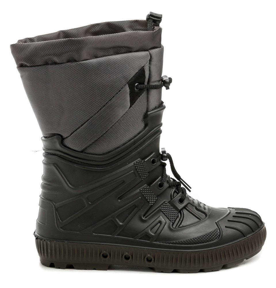 Obuv je vyrobená z kombinácie syntetického a textilného materiálu. Vnútorná časť obuvi je vybavená textilným chlpatým kožúškom, ktorý tvorí zateplenie. Spodná časť obuvi je celá z jedného odliatku, ktorý zaisťuje vodeodolnosť. K spodnému odliatku je prišitý vrchný nadstavec so zateplením.