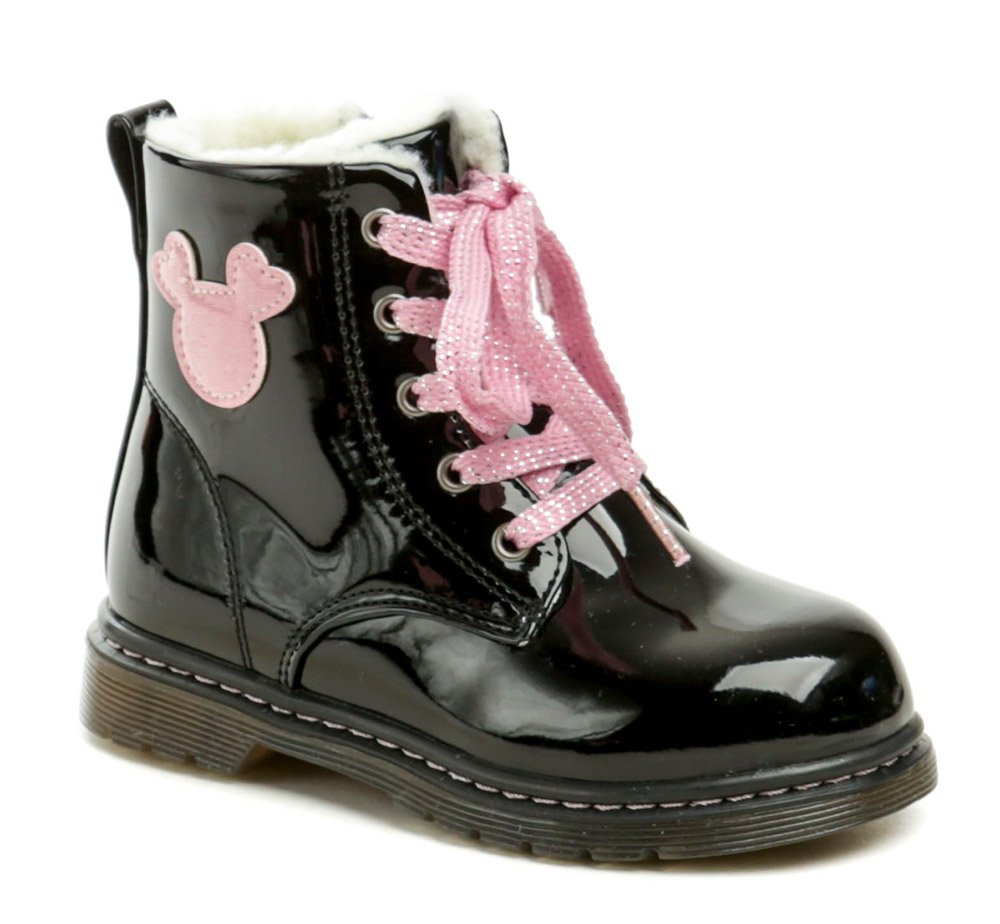 Detská zimná členková obuv na šnurovanie aj zapínanie na zips, vyrobená zo syntetického materiálu a vo vnútri vybavená chlpatým textilným kožúškom.